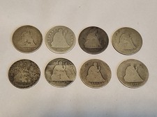 (Lot Of 8) 25C Seated Liberty Quarters .900 Silver Coins - Lowball/AG/Cull
