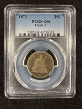 1873 Seated Liberty Quarter 25C PCGS G06 OPEN 3 REALLY GREAT PROBLEM FREE COIN!