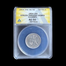 1854 Seated Liberty Quarter Arrows 25C ANACS AU50 Detail Cleaned - 0311