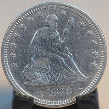 1873 25c Seated Liberty Quarter W/arrow Silver Coin
