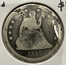 1840 Seated Liberty Quarter 25C Silver U.S. Coin - Damaged