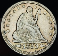 1853 Seated Liberty Quarter Arrows & Rays -FREE SHIPPING-