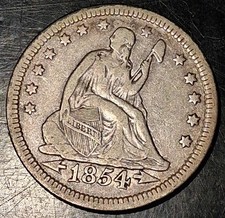 1854 Seated Liberty Quarter – Arrows – Circulated Silver