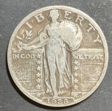 1928 Standing Liberty Quarter 90% Silver Antique 25c