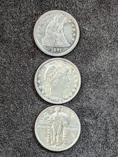 1891 Seated Liberty, 1899 Barber and 1920 Standing Liberty Quarters, High Grades