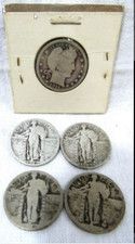 5 U.S. SILVER QUARTERS 1-BARBER 4-STANDING LIBERTY