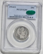 1914-S G04 4 PCGS 15 SILVER QUARTER DOLLAR GREEN BEANIE .25 Coin Graded US