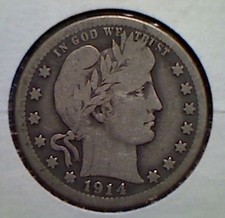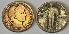 1914 25c Barber Quarter & 1928 25c Standing Liberty 2 Silver Coins