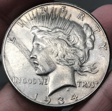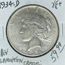 AU 1934 Silver Peace Dollar Lamination Error On Reverse!