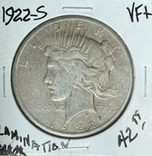 1922 S Silver Peace Dollar - Obverse Lamination Error - 4/7