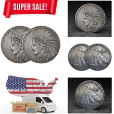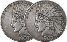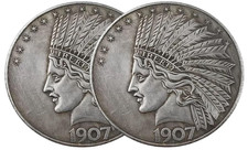2PCS 1907 Antique Liberty Indian Head $10 Dollar Coin, Uncirculated Morgan Silv