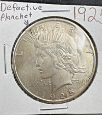 1925 P $1 Peace Silver Dollar Coin Defective Cracked Planchet Error XF