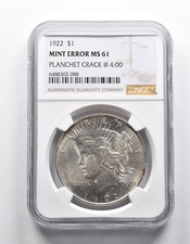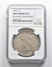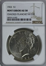 1922 $1 Peace Dollar NGC Mint Error Cracked Planchet AU 58