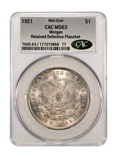1921 $1 Morgan Silver Dollar Mint Error CAC MS63 Retained Defective Planchet 🔥