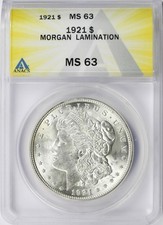 1921 $1 Morgan Dollar ANACS MS63 – Lamination Error on Reverse