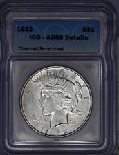1922 Peace Dollar $1 ICG AU58 Details - Cool Mint Error Cracked Planchet