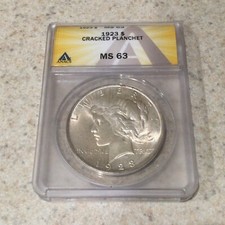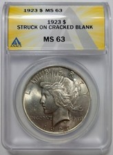 1923 Peace Silver Dollar ANACS MS-63 Struck on Cracked Blank Planchet Mint Error