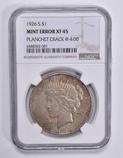 MINT ERROR XF45 1926-S Peace Silver Dollar Planchet Crack @4:00 NGC *1806
