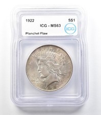 ERROR 1922 Peace Silver Dollar Planchet Flaw MS63 ICG *3409