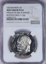 Eisenhower Dollar $1 NGC PF64 PR64 Unique Mint Error - 50c Planchet Rotated Dies