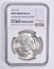 1923 Peace Dollar Planchet Crack, Mint Error MS 63 NGC FREE SHIPPING