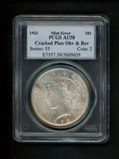 1922 $1 Peace Silver Dollar - Cracked Planchet Error Obverse/Reverse RARE R1075