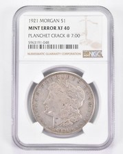 Mint Error XF40 1921 Morgan Silver Dollar - Planchet Crack @ 7:00 NGC *8892