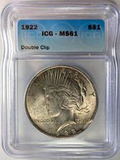 1922 Peace Silver Dollar ICG MS-61 Double Clip Planchet Mint Error Clipped