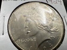 1924-P $1 Peace Dollar - Philadelphia - Planchet Error OBV @ 3:00 RARE R1099