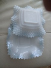 Fenton Depression Art Work Glass Opalescent Blue Appetizer Dishe 7X7 Ich Set 2