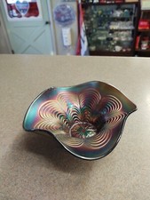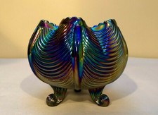 Fenton Carnival Glass Cobalt Blue Bon Bon Persian Medallion & Stippled Ray