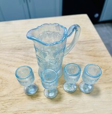 1980 Fenton Encore Blue Carnival Glass Miniature Water Set Pitcher Goblets