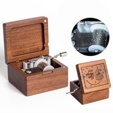 Hand Crank Solid Wood Music Box,Antique Engraved Musical Boxes Case Christmas...