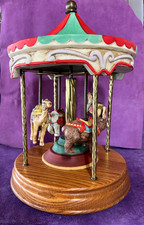VINTAGE LARGE 4 ANIMAL CAROUSEL MUSIC BOX - CERAMIC BRASS WOOD - (WILLETS??)