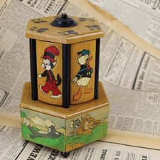 Antique Music Wood Box & Cigarette/Cigar Holder Tom & Jerry, Mickey, Donald Duck