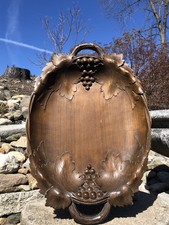 Antique Ornate Hand Carved Walnut Wood Floral Grapes Music Box Bowl Black Forest