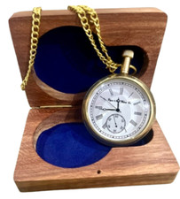 Brass Pocket Watch with Wooden Box VINTAGE Antique Pocket Watch Men Women Gift