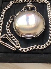 VINTAGE COLIBRI QUARTZ POCKET WATCH, SILVER TONE CASE & MATCHING CHAIN AS-IS