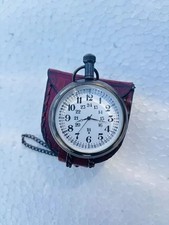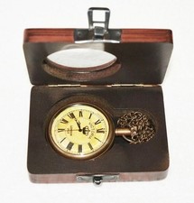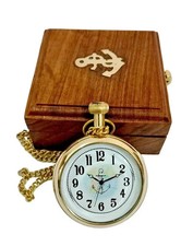 Vintage brass pocket watch with wooden box maritime working pocket watch