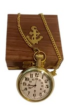 Antique Vintage Maritime Royal Navy Brass Pocket Watch With Wooden Box Gift