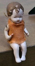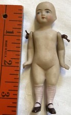 Antique German all bisque jointed miniature dollhouse doll 4.5" tall #5000