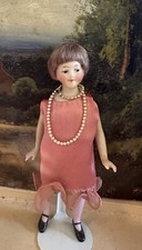 Antique German Hertwig Bisque Flapper Dollhouse Doll 3 1/4"