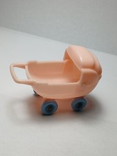 Vtg Acme Plastic Dollhouse Toy Pink Blue Baby Doll Buggy Wheeled Carriage I-139