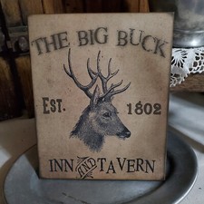 VINTAGE PRIMITIVE FOLK STYLE 1802 BIG BUCK TAVERN DEER ADVERTISING CANVAS SIGN