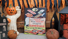 OLD PRIMITIVE VINTAGE RETRO STYLE HALLOWEEN CURTISS CANDY BOX ADVERTISING SIGN