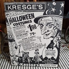VINTAGE RETRO OLD COSTUME HALLOWEEN KRESGES DIME STORE WITCH ADVERTISING SIGN