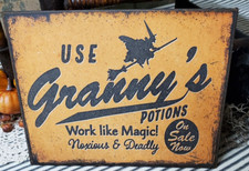 VINTAGE PRIMITIVE FOLK STYLE HALL0WEEN ADVERTISING GRANNY'S POTIONS WITCH SIGN