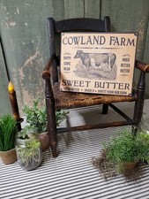 PRIMITIVE ANTIQUE VINTAGE STYLE DAIRY COWLAND FARM ADVERTISING BUTTER COW SIGN