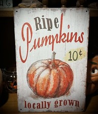 Black White Local Ripe Pumpkins Vintage style Advertising Metal Sign 12X8”