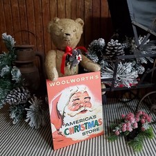 OLD VINTAGE MODERN RETRO STYLE CHRISTMAS SANTA WOOLWORTH STORE ADVERTISING SIGN
